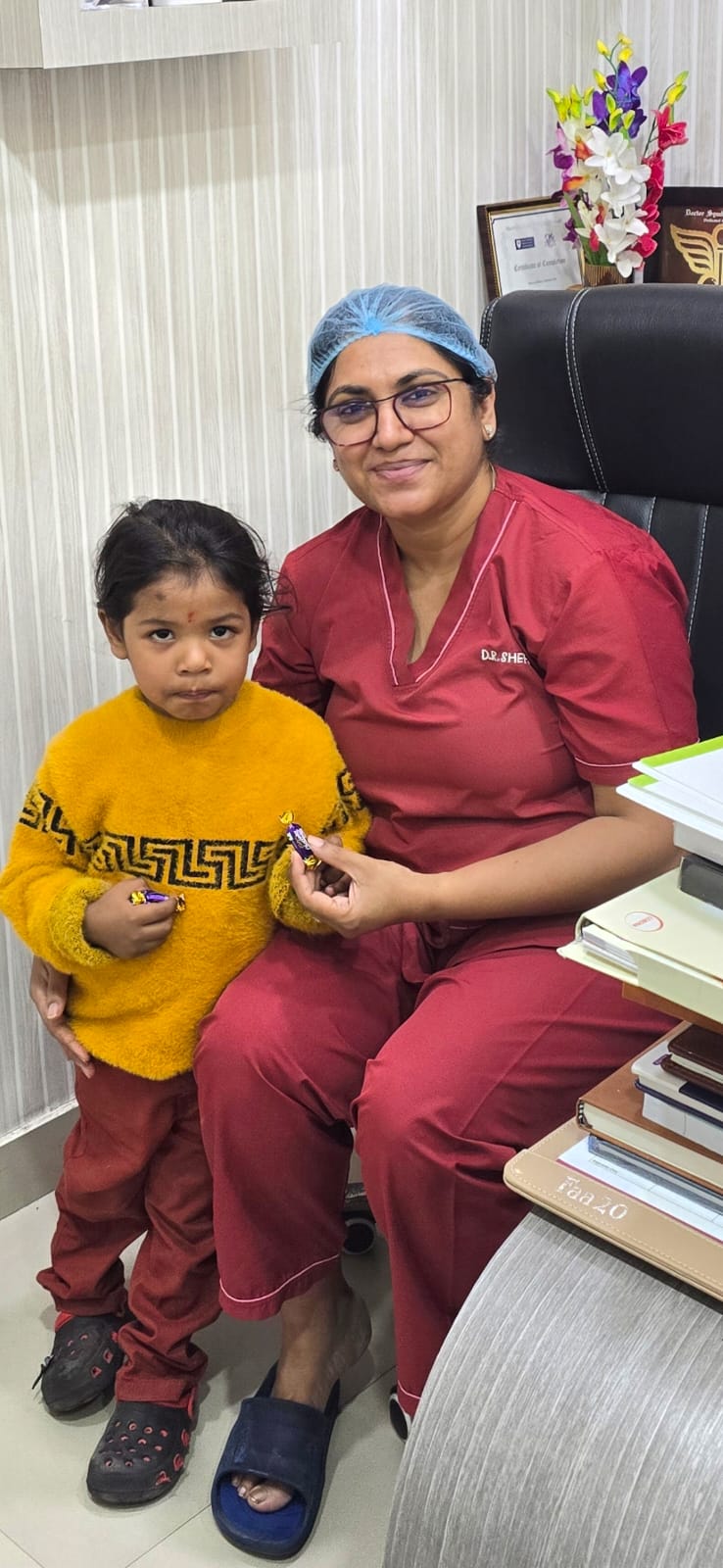 A pleased mother with her children came to see Dr. Shefali Bansal Madhav and expressed her sincere g